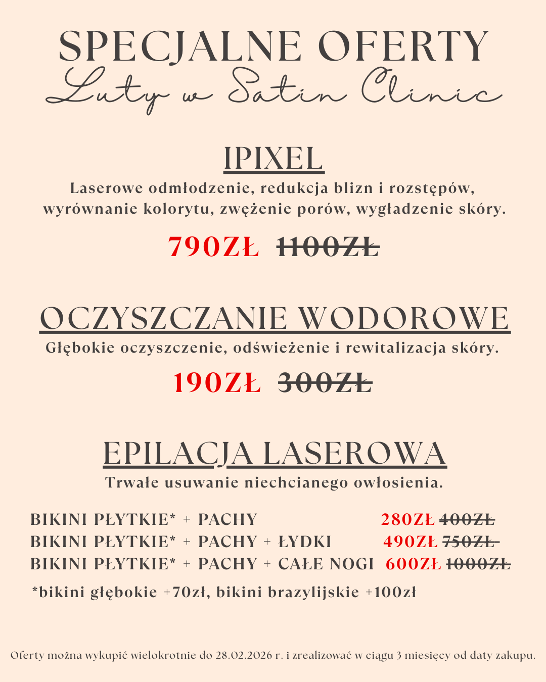 Epilacja laserowa PrimelaseDye-Vl naczynka, rumień, przebarwieniaDye-Vl fotoodmładzanieClear Lift lifting twarzy, redukcja przebarwieńClear Lift usuwanie tatuażu i makijażu permanentnegoiPixel odmłodzanie, redukcja blizn i rozstępówBaby Collagen odmłodzenie, lifting, redukcja przebarwieńClear Lift + iPixel odmłodzenie, resurfacing